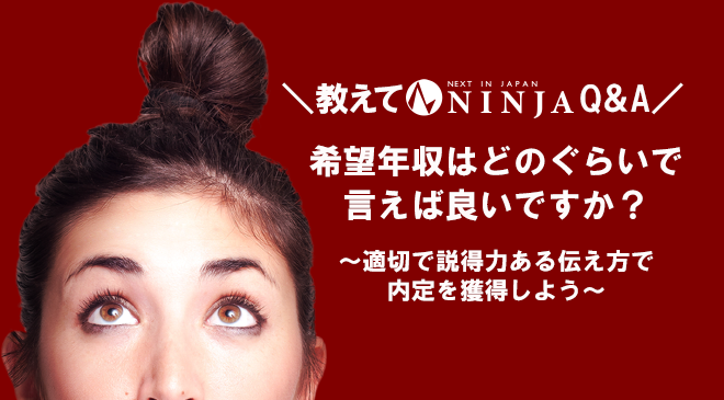 今回の教えてNINJAQ&Aでは「希望年収について」解説します。「希望年収」は、履歴書を書く時も、面接でもよく聞かれる質問です。適切で説得力のある伝え方であなたにぴったりの求人スカウト・内定オファーを獲得しましょう!