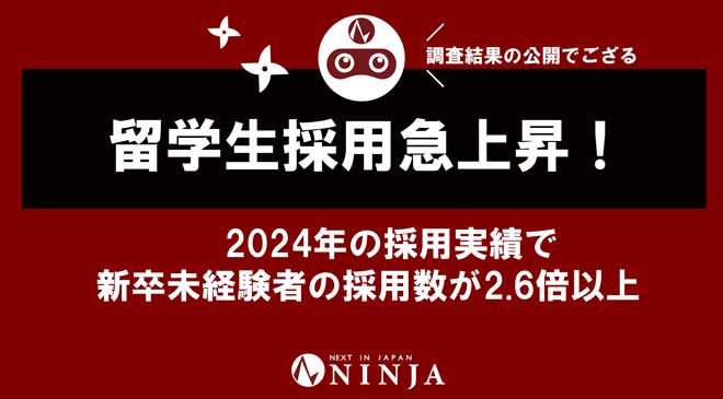 NINJAに掲載してある求人では、仕事経験を求められている求人が多くありますが、実際に採用された方は「留学生(新卒未経験)」だった、というケースも多くありますので、興味がある求人、挑戦してみたい求人があった場合は、どんどん応募をしてみてください。