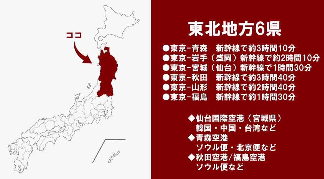 歴史ある城下町や雄大な自然、ものづくりや食文化の伝統が息づく東北エリア。 自動車・電子部品・食品加工・観光・農業など、多彩な産業が根付いており、地域に密着しながら安定して働ける職場が多数あります。 今回は、青森県(Aomori)・岩手県(Iwate)・宮城県(Miyagi)・秋田県(Akita)・山形県(Yamagata)・福島県(Fukushima)の東北6県から、注目の求人をピックアップしてご紹介します!